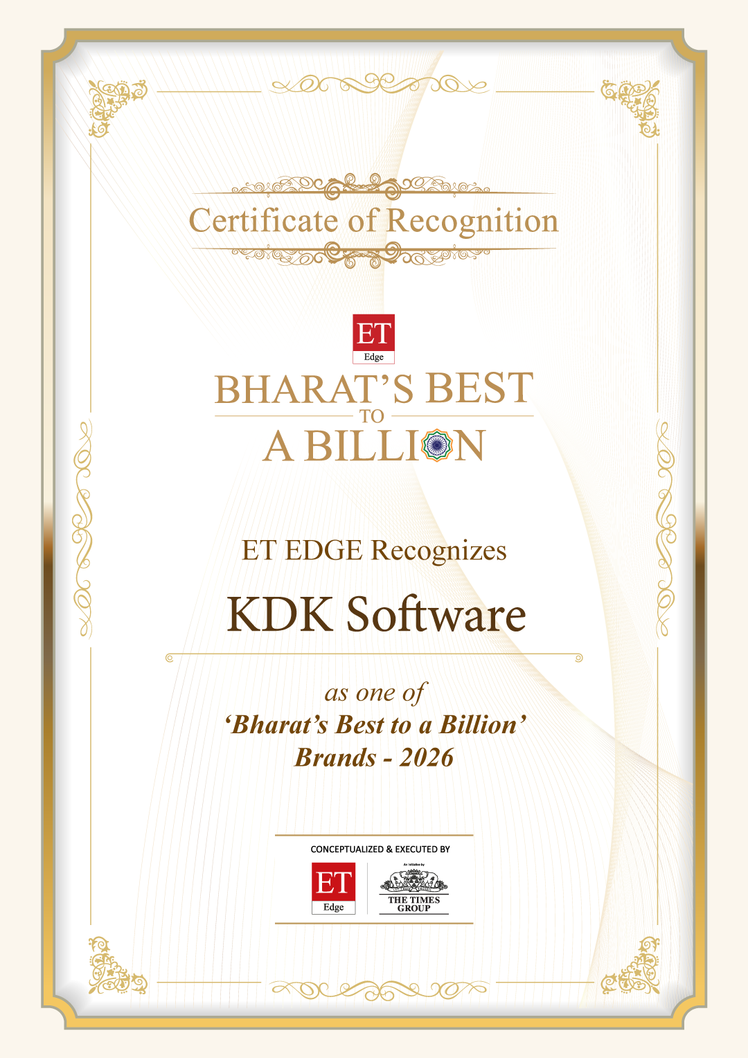 In March 2026, ET Edge, the knowledge arm of The Economic Times, recognised KDK Software as one of the companies featured under “Bharat’s Best to a Billion.”, a national platform that spotlights high-growth Indian enterprises building with discipline, purpose, and long-term vision.