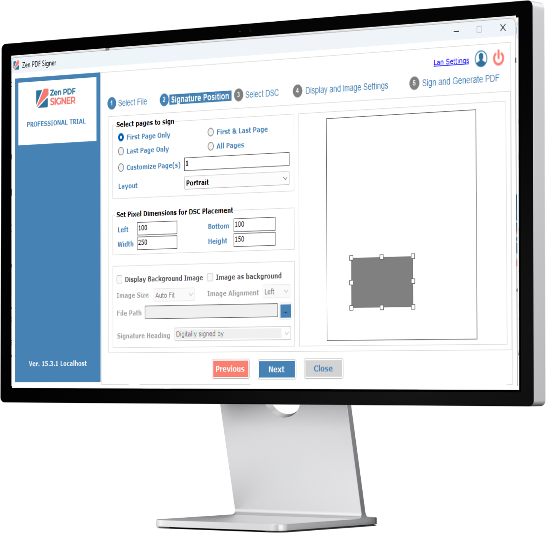 Choose where your signature appears, first page, last, all pages; customize look and metadata as needed.